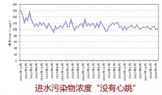 “污水處理廠的進水濃度也應(yīng)該進行調(diào)查,因為從這個指標入手,我們可以初步判定整個污水收集系統(tǒng)外水入滲的程度,還要包括旱天、雨天水量變化和溢流量調(diào)查。”唐建國同時以圖片舉例,如果污水處理廠的進水污染物濃度沒有“心跳”,進水水質(zhì)基本恒定在一條直線上,就可以判斷出它的進水濃度有問題。