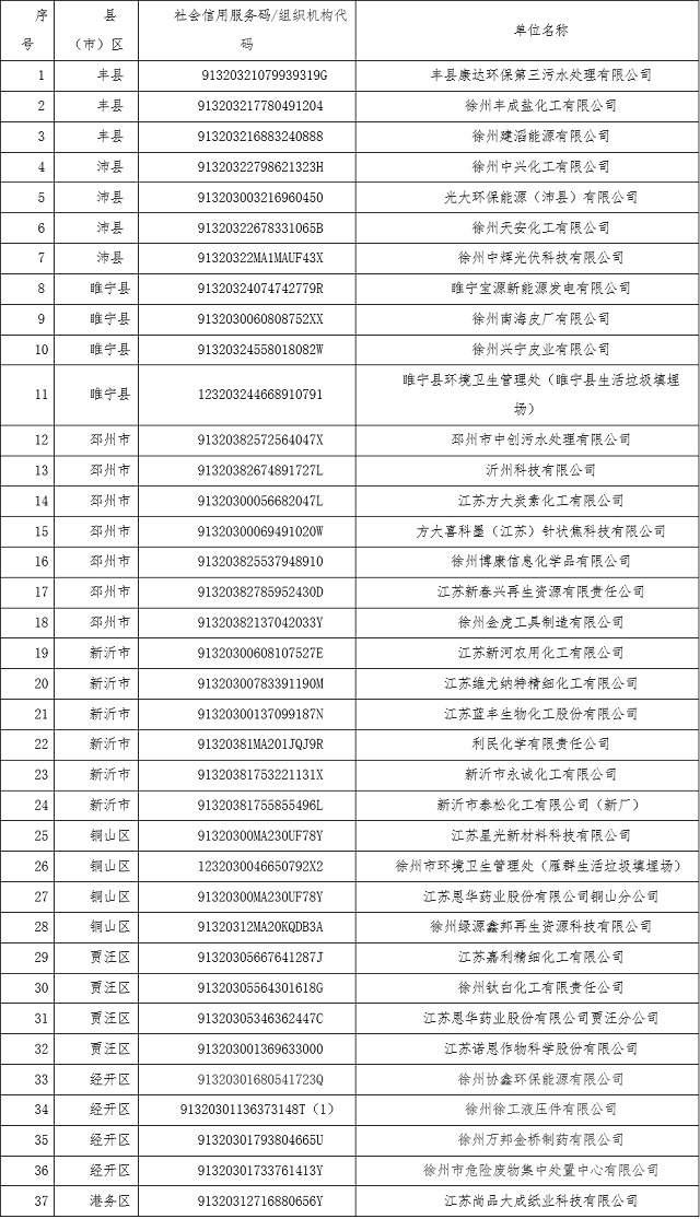徐州市公布2022年地下水污染防治重點排污單位名錄,共有37家企事業單位。