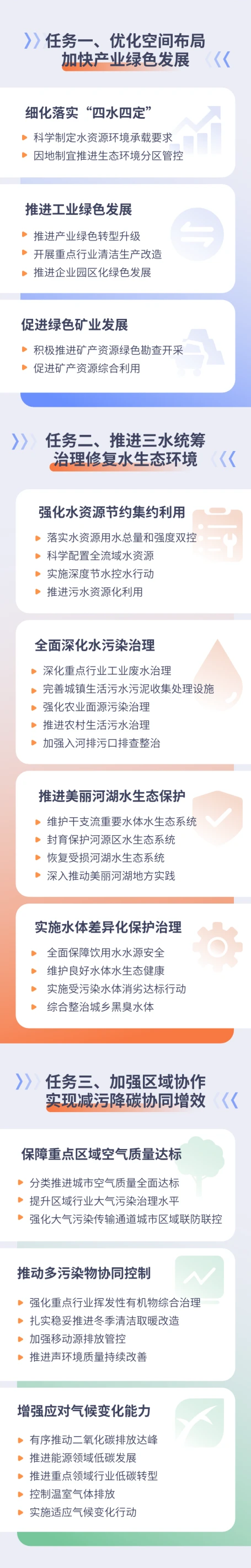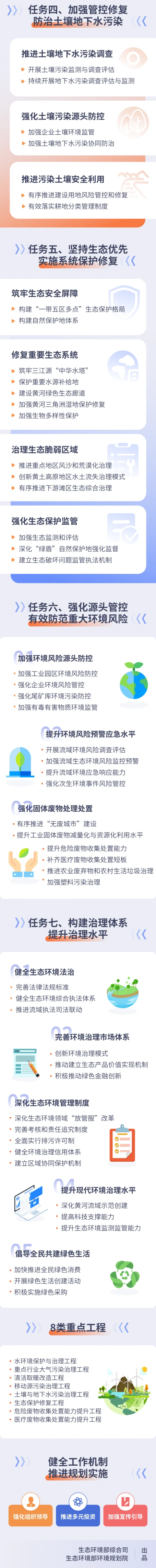 《規(guī)劃》提出7方面重點任務:一是優(yōu)化空間布局,加快產(chǎn)業(yè)綠色發(fā)展;二是推進三水統(tǒng)籌,治理修復水生態(tài)環(huán)境;三是加強區(qū)域協(xié)作,實現(xiàn)減污降碳協(xié)同增效;四是加強管控修復,防治土壤地下水污染;五是堅持生態(tài)優(yōu)先,實施系統(tǒng)保護修復;六是強化源頭管控,有效防范重大環(huán)境風險;七是構建治理體系,提升治理水平。