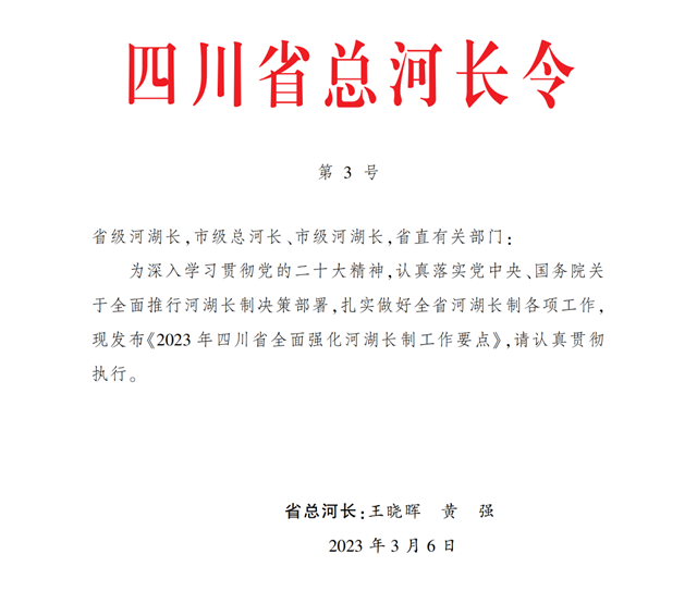 四川省發布省總河長3號令安排部署年度工作