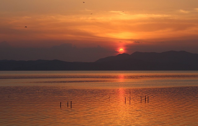 傍晚的蒼山洱海。