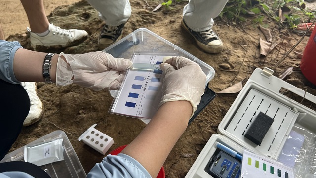 圖為珠江南海局監(jiān)測與科研中心工作人員進(jìn)行水質(zhì)快檢