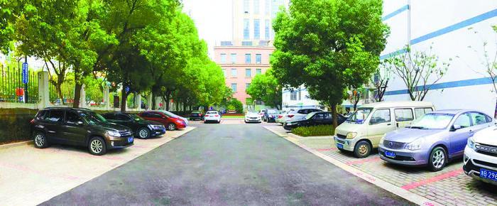 道路工程統一進行“白改黑”改造,結合雨落水管斷接,同步翻建混凝土建筑散水坡,避免雨水入滲底層自行車庫;結合海綿措施,將破損停車場改造為內嵌式透水植草停車場,結構層采用鋼渣透水混凝土,面層采用模框植草磚,雨水直接下滲,在保證透水的基礎上又增添了綠意。