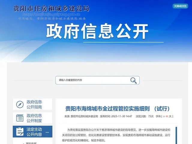 近日,貴陽市住房和城鄉建設局發布貴陽市海綿城市全過程管控實施細則(試行)。