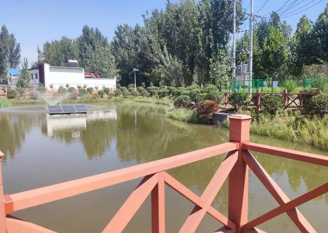 蘇玥心是劉莊村的網格員,她每天都會到池塘旁巡視,確保沒有污水流進池中,并在發(fā)現(xiàn)垃圾后及時清理。“噴泉是由太陽能進行發(fā)電,節(jié)能環(huán)保。池中還養(yǎng)殖著魚類,起到凈化水質、監(jiān)測水質的作用。”蘇玥心說,在夏季雨水較多時,她會增加巡查次數(shù)?!鞍l(fā)現(xiàn)污水排入或是池中有垃圾時,我會進行清理和上報,相應的工作人員都會及時響應,守護這來之不易的清澈?!彼f,如今這里空氣濕潤清新,每天傍晚都有不少村民到此散步休閑。