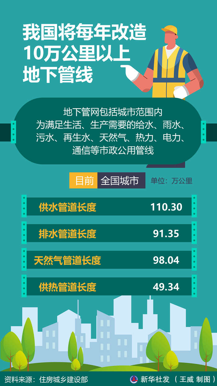 地下管網(wǎng)改造,是市政工程,更是民生工程。記者近日從住房城鄉(xiāng)建設(shè)部了解到,未來,我國(guó)將每年改造10萬公里以上地下管線。
