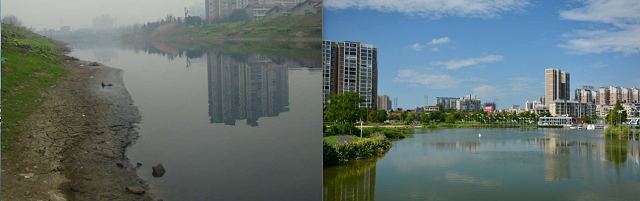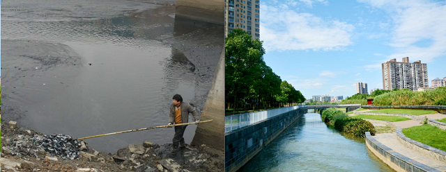 穿紫河船碼頭段海綿城市建設前后對比照