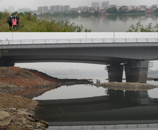 穿紫河七里橋段海綿城市建設前后對比照