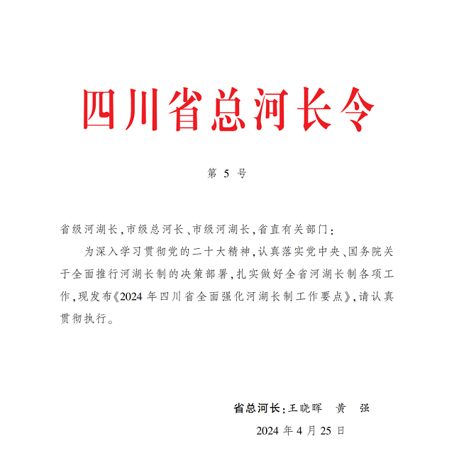 四川省發布省總河長5號令安排部署年度工作