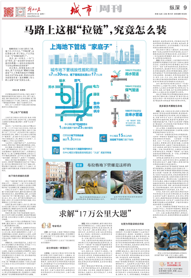 日前,《解放日報》記者訪談了上海市政總院總工程師(結(jié)構(gòu))王恒棟,就城市地下管線建設和管理方面作深入探討,文章刊發(fā)于8月5日出版的《解放日報》縱深專欄,原標題為《馬路上這根“拉鏈”,究竟怎么裝》。