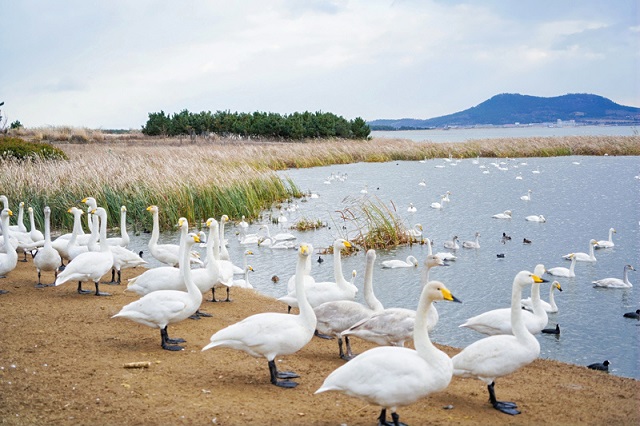 然而,每年的秋冬時(shí)節(jié),成群結(jié)隊(duì)的天鵝卻選擇在這片看似缺水的土地上棲息繁衍,榮成櫻花湖因此被譽(yù)為“城市中的天鵝湖”,吸引了大量游客前來觀賞。