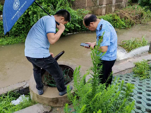 “洪水過后的隱患排查必須萬無一失!”執(zhí)法隊員黃原在某鄉(xiāng)鎮(zhèn)污水處理廠排查時,敏銳發(fā)現雨水排水口被堵塞,他立即要求企業(yè)整改。