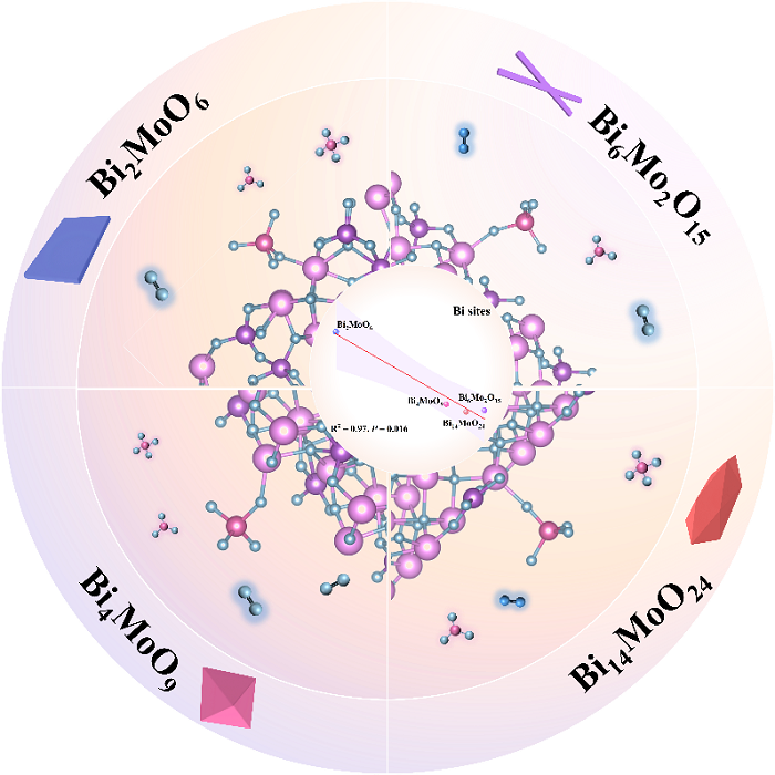 在最新研究中,團(tuán)隊(duì)合成并對(duì)比四種典型鉬酸鉍晶相,揭示其在高碘酸鹽活化中的差異,首次明確鉍—氧鍵活性、三價(jià)鉍暴露程度及表面電荷分離效率的關(guān)鍵作用。其中,二鉍六氧化二鉬憑借獨(dú)特的奧里維利烏斯層狀結(jié)構(gòu)與優(yōu)異電子行為,實(shí)現(xiàn)對(duì)典型抗生素氧氟沙星的超快速降解,且在多種天然水體、共存離子及連續(xù)流條件下保持高穩(wěn)定性。